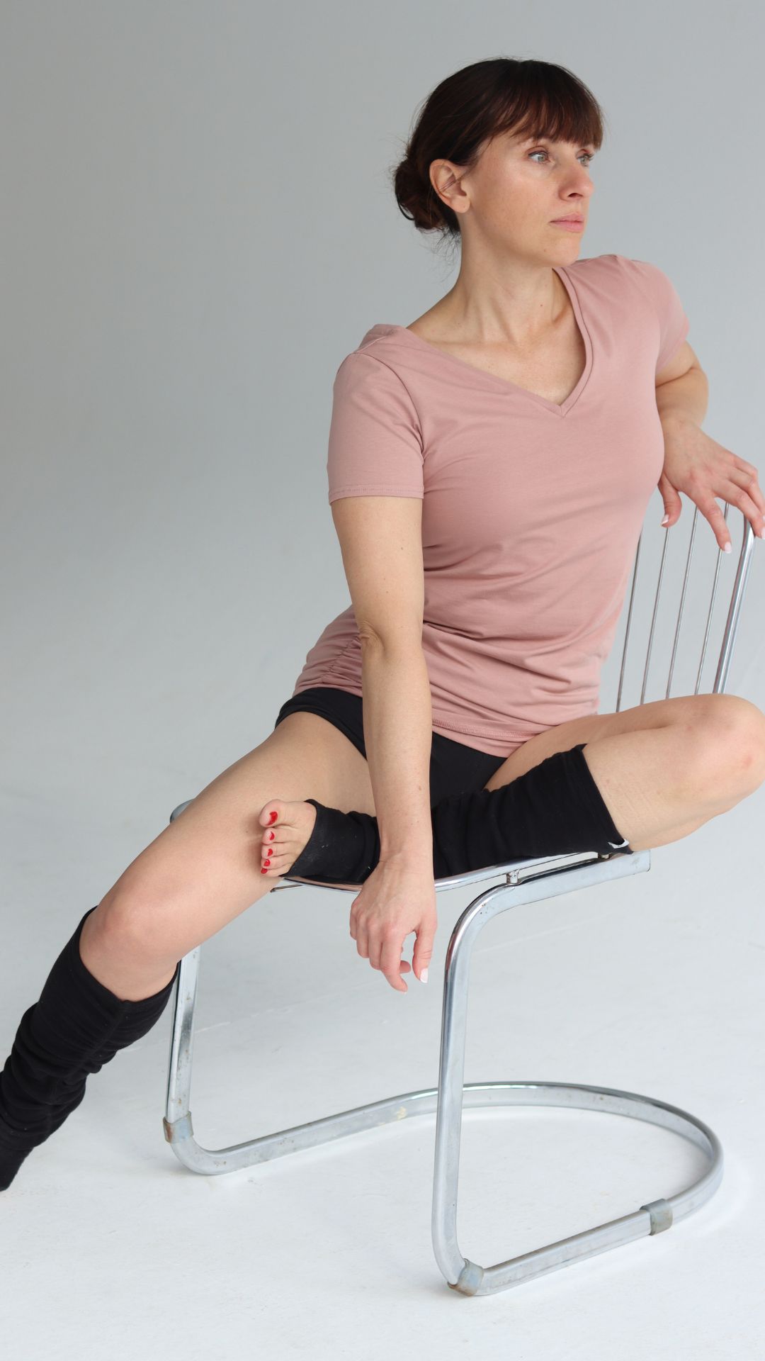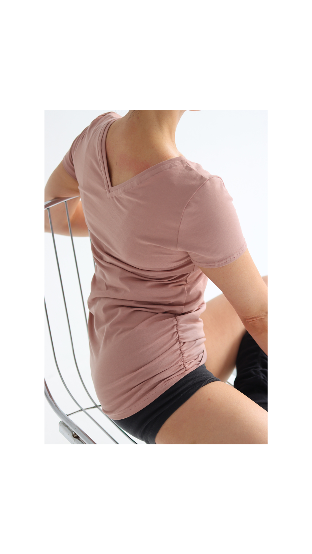 Olala koszulka jest dłuższa zakrywa biodra. Dzięki wszytym gumkom na bocznych szwach, możesz mieć pewność że podczas pozycji odwróconych zostanie na miejscu i nie odsłoni brzucha. Wykonane z gładkiego materiału.